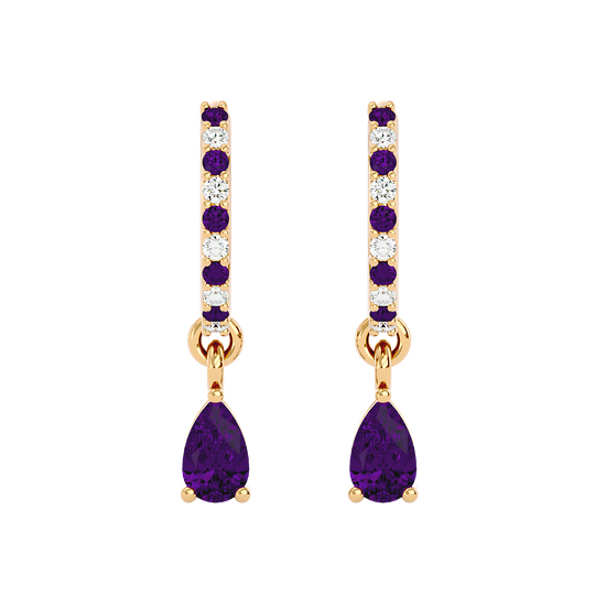 These sterling silver huggies are made to be noticed — but never loud. Featuring dreamy, pear-cut amethysts surrounded by a halo of cubic zirconia, they offer a graceful balance of calm color and soft shimmer.