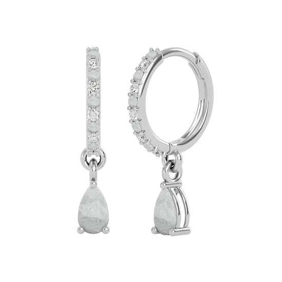 These sterling silver huggies are made to be noticed — but never loud. Featuring ethereal, pear-cut moonstones surrounded by a halo of cubic zirconia, they offer a soft, luminous glow with just the right hint of shimmer.