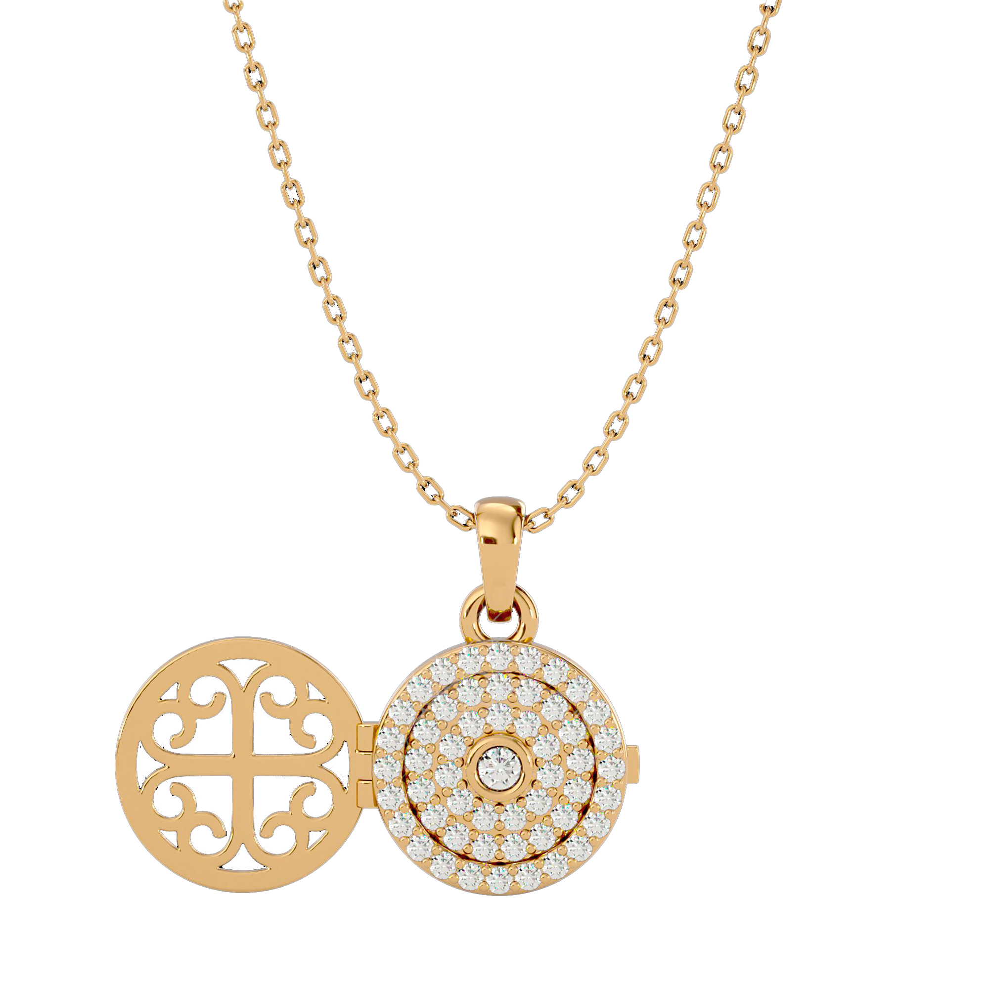 This luminous clear quartz locket is more than just a necklace — it’s a quiet symbol of clarity, intention, and inner light. At its center rests a crystal-clear quartz, cherished for its ability to amplify energy, focus the mind, and cleanse the spirit. It’s delicately surrounded by sparkling cubic zirconia, adding a subtle brilliance that catches the eye without speaking too loudly.