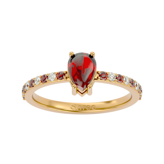 There’s something truly captivating about this piece. At its heart is a stunning deep red garnet — a stone celebrated for its association with passion, energy, and vitality. It’s beautifully framed by sparkling cubic zirconia that catch the light, adding just the right amount of shimmer.