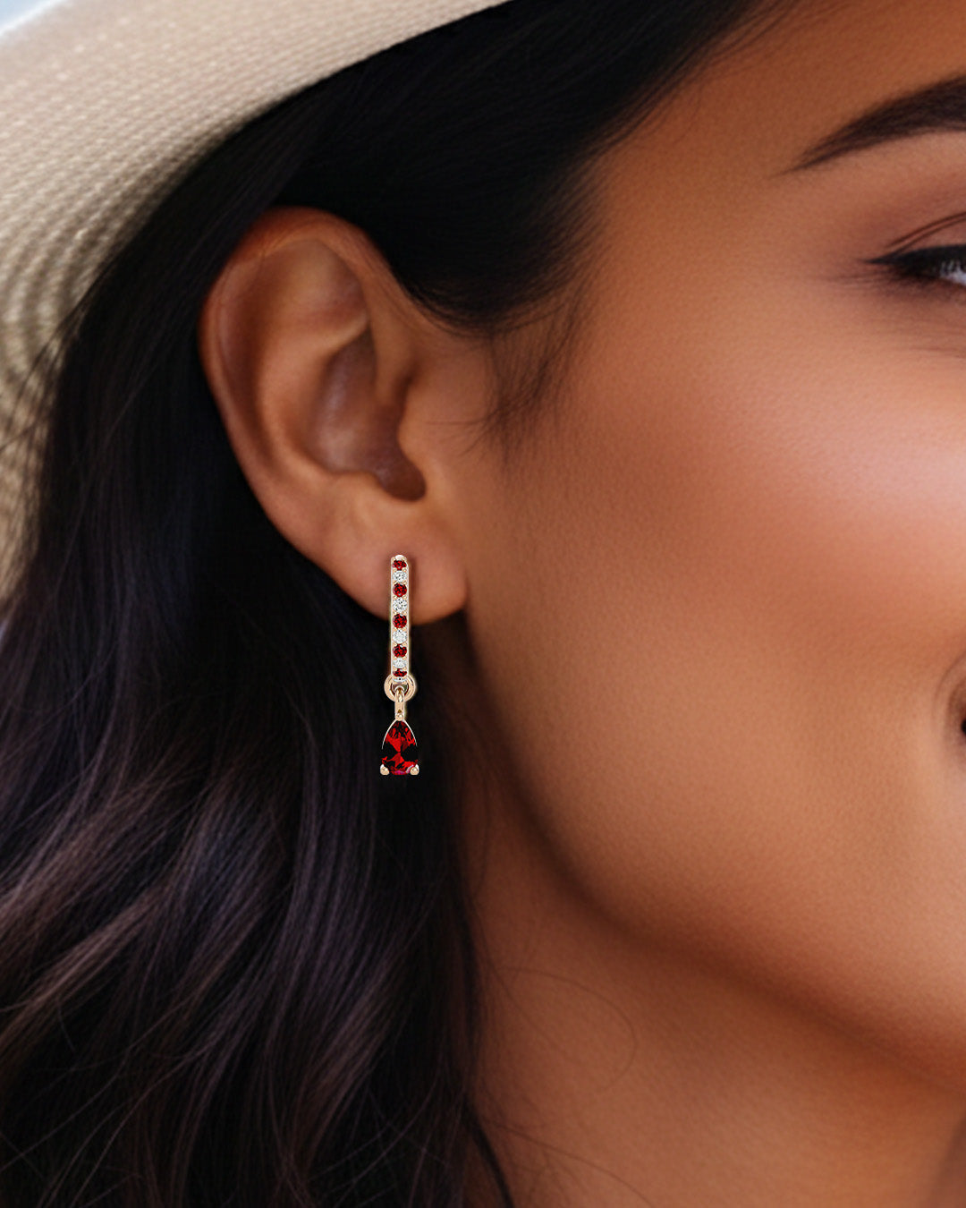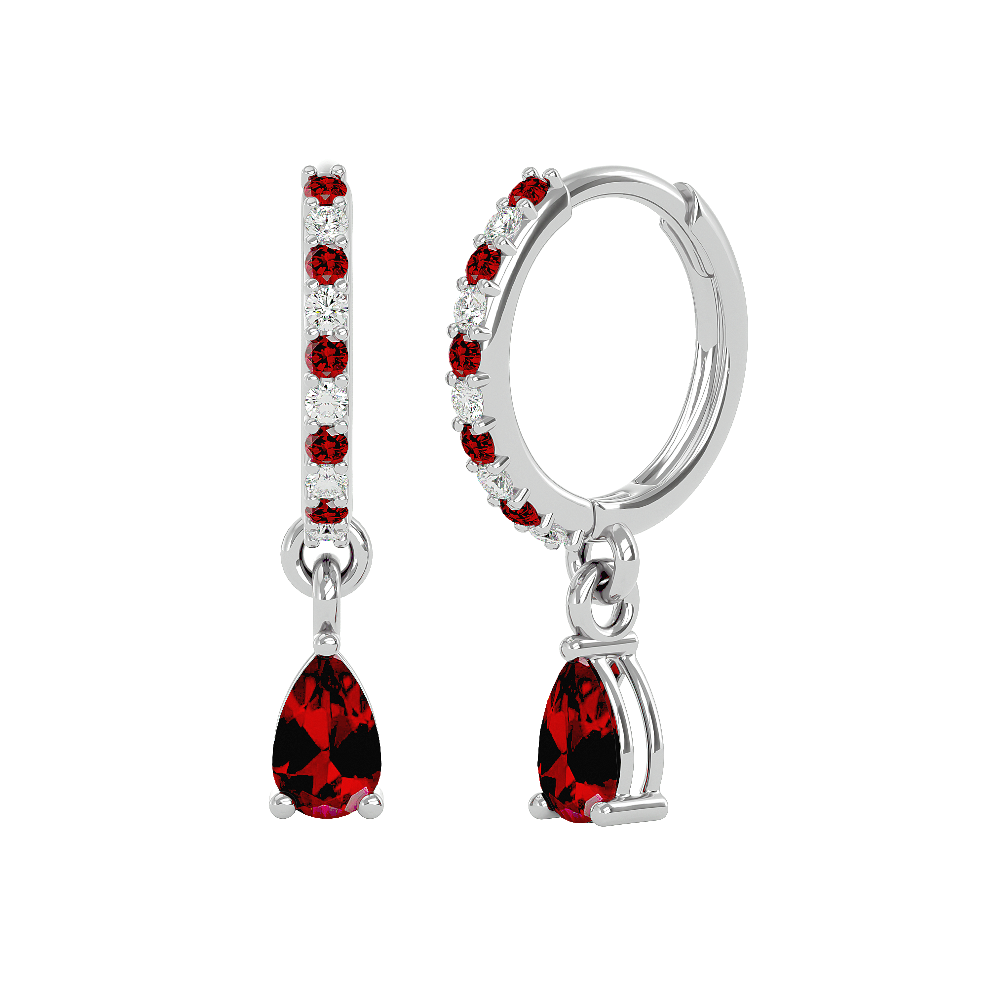 These sterling silver huggies are made to be noticed — but never loud. Featuring rich, pear-cut garnets surrounded by a halo of cubic zirconia, they offer just the right blend of warmth and shimmer.