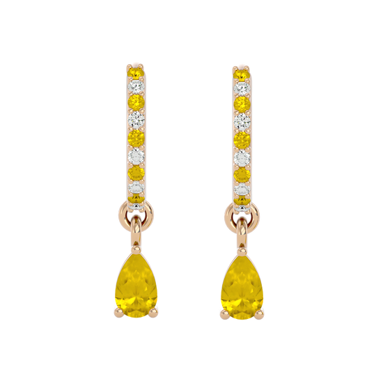 These sterling silver huggies are made to be noticed — but never loud. Featuring golden, pear-cut citrines surrounded by a halo of cubic zirconia, they offer a warm, sunlit glow with a touch of cheerful shimmer.