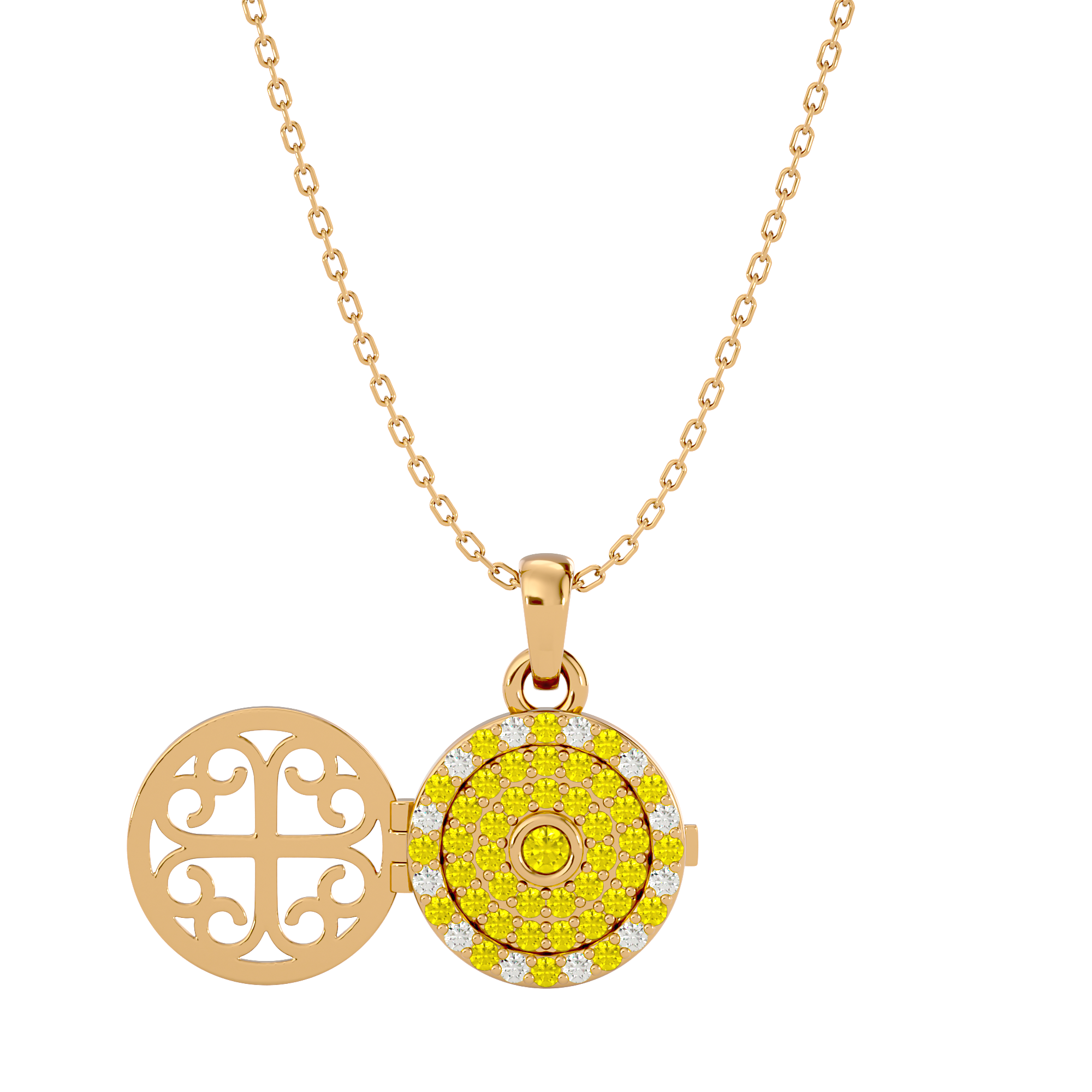 This golden citrine locket is more than just a necklace — it’s a quiet celebration of joy, confidence, and radiant energy. At its center glows a sunlit citrine, treasured for its uplifting qualities and its power to inspire abundance, creativity, and a bright outlook. Surrounded by sparkling cubic zirconia, it catches the light with effortless warmth.