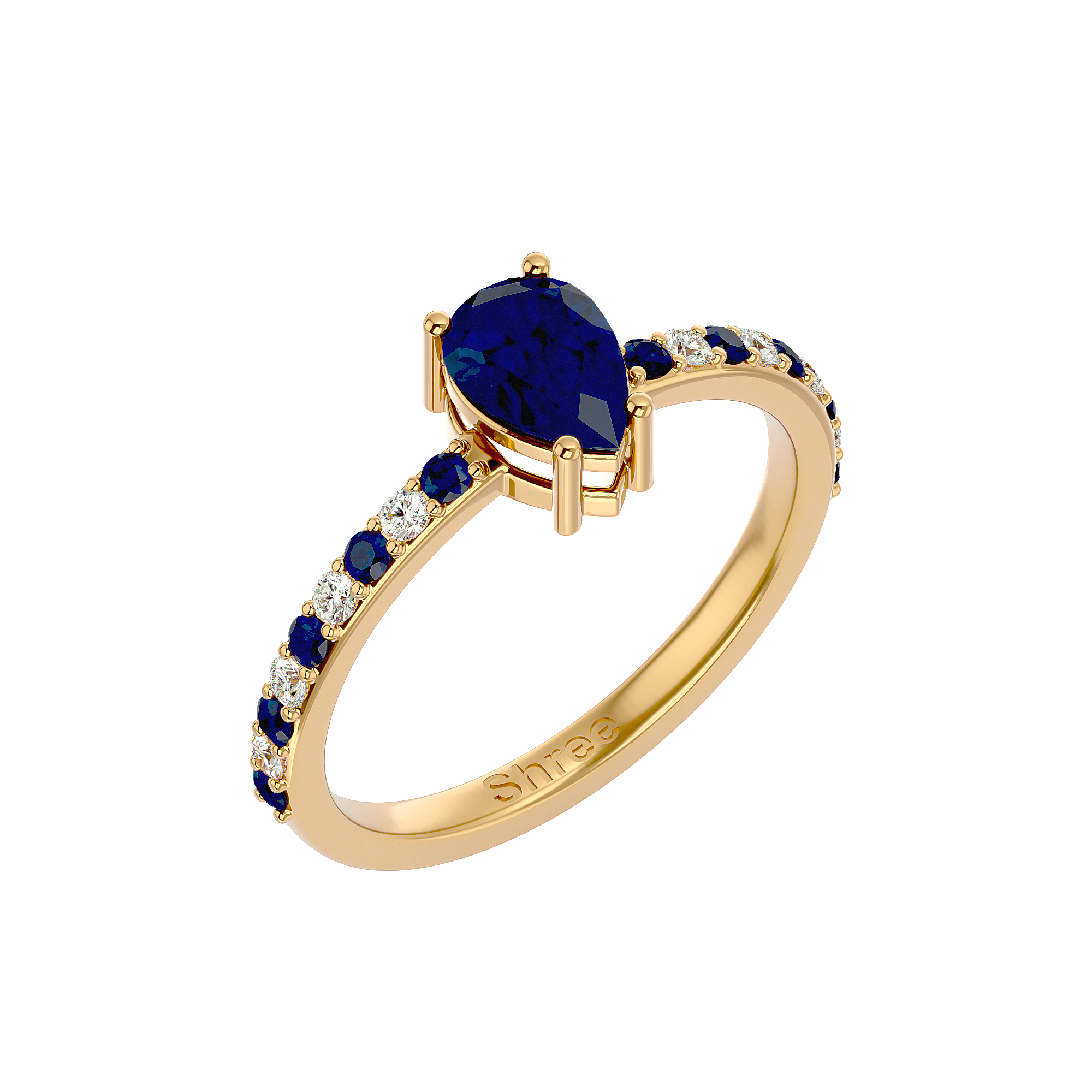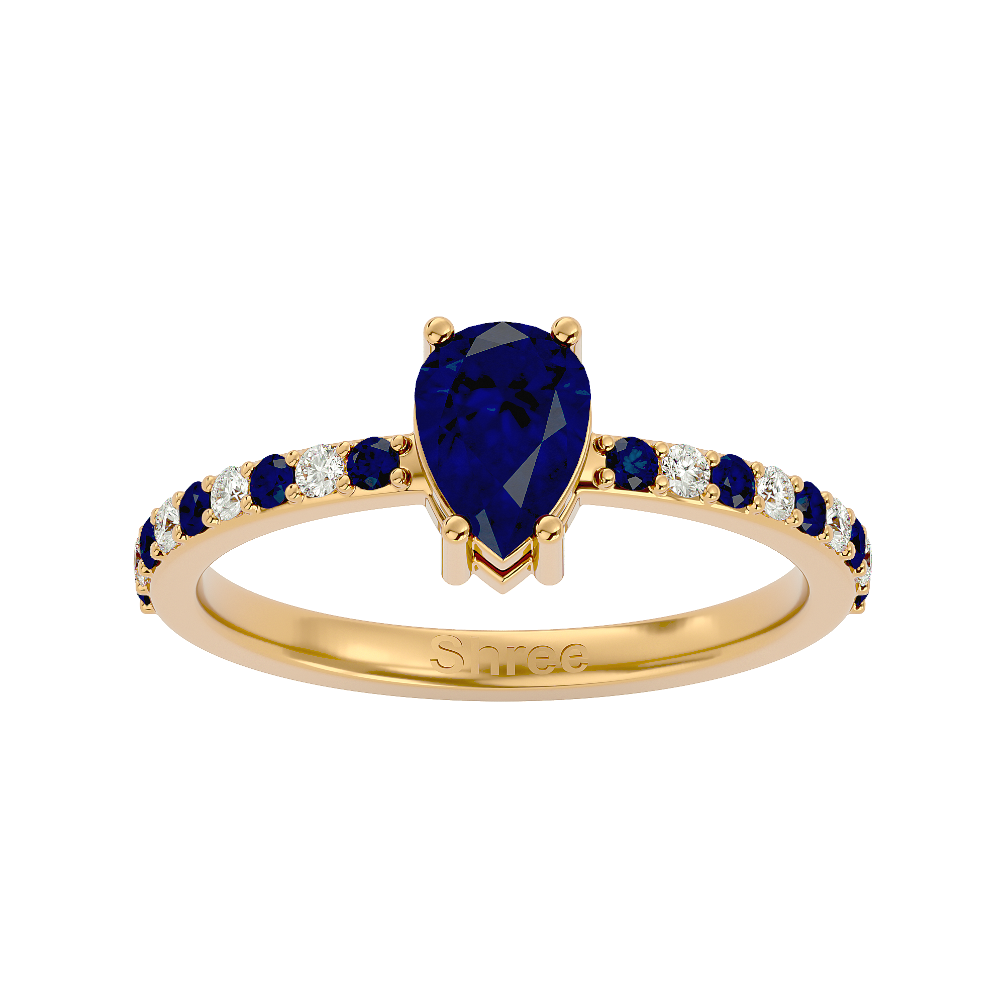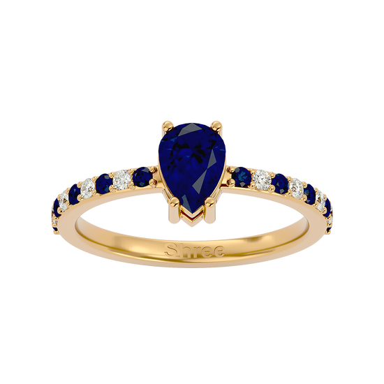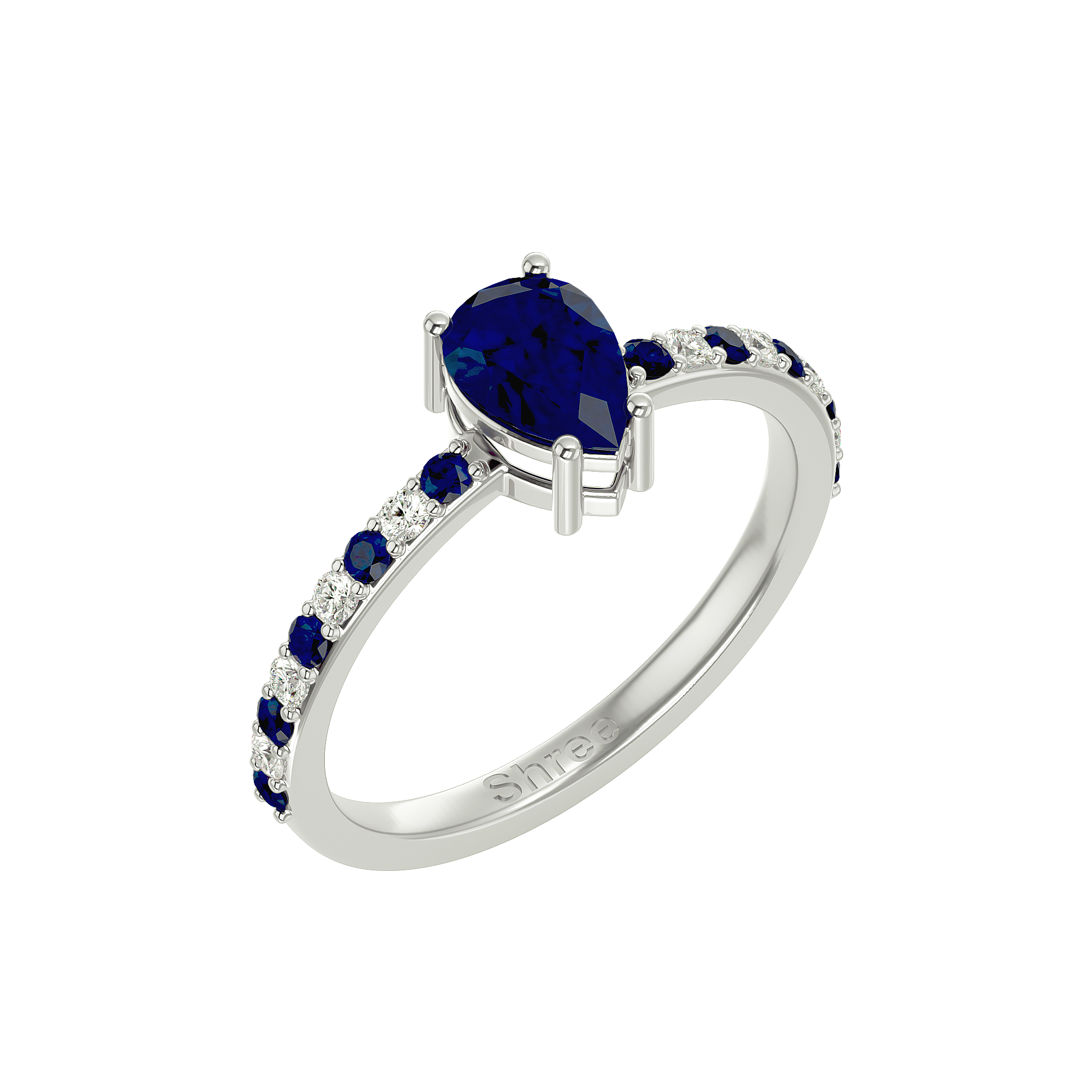 There’s something truly special about this piece. At its heart is a deep blue, pear-shaped sapphire — a stone long associated with wisdom, loyalty, and calm strength. It’s framed by sparkling cubic zirconia that catch the light beautifully, adding just the right amount of shimmer.