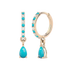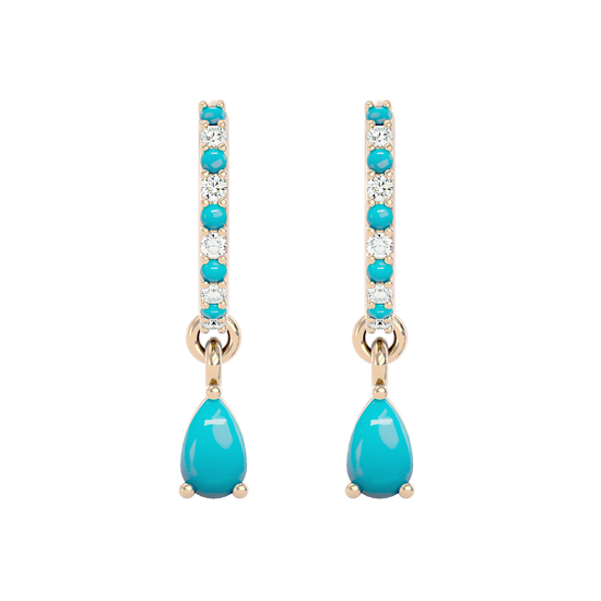 These sterling silver huggies are made to be noticed — but never loud. Featuring vibrant, pear-cut turquoise stones surrounded by a halo of cubic zirconia, they offer a fresh pop of color with a bright, breezy shimmer.