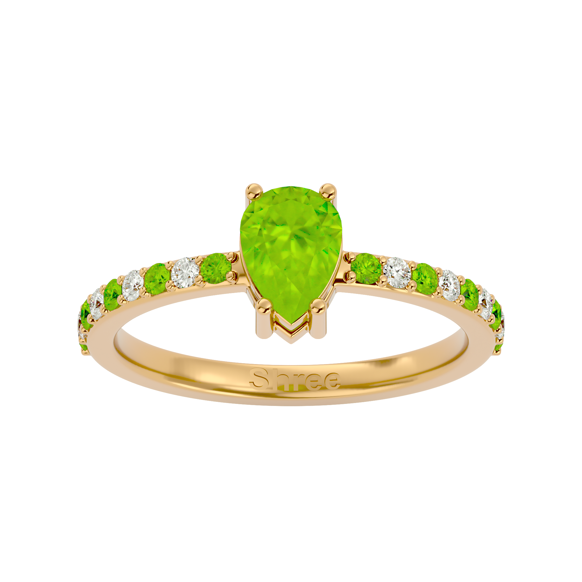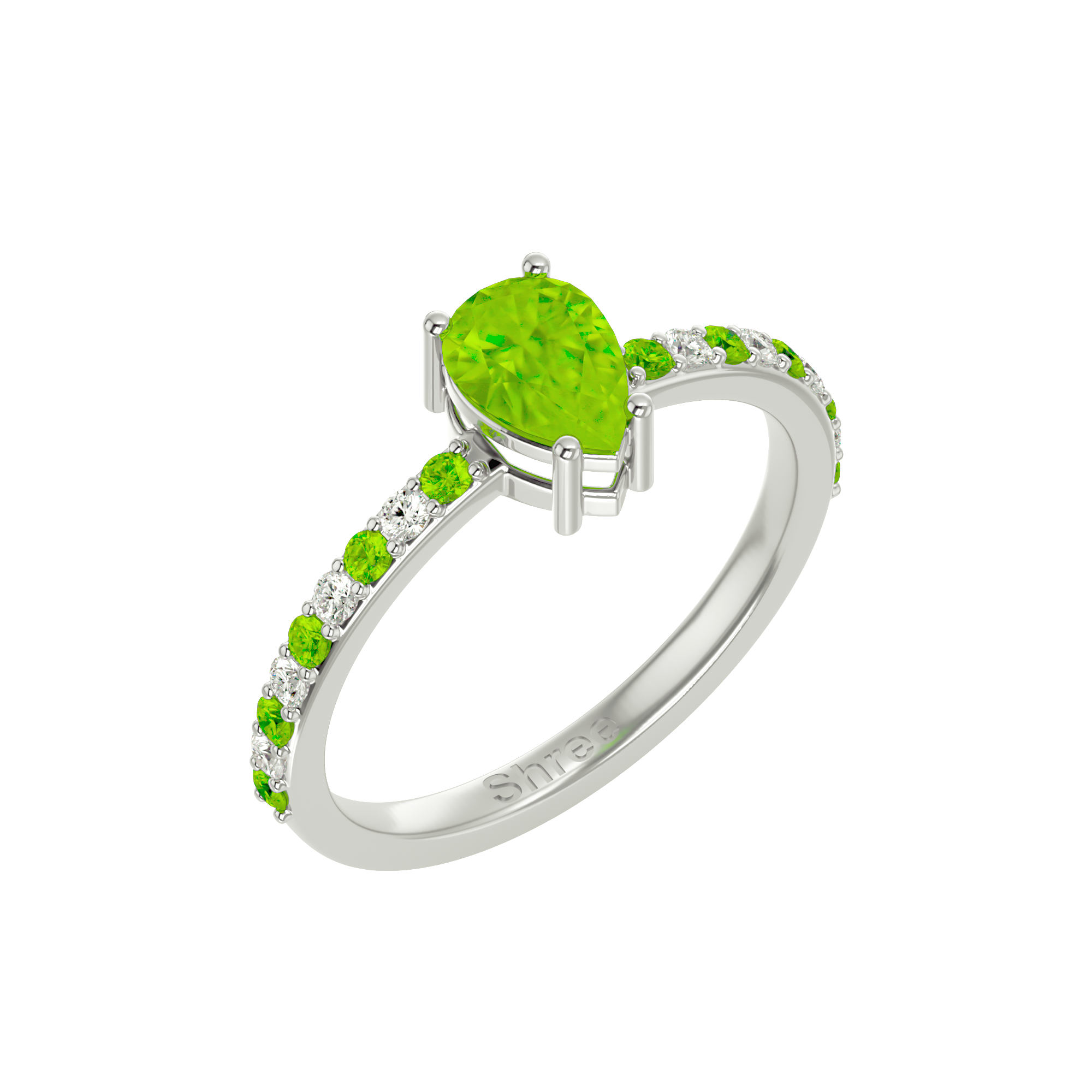 There’s a fresh, radiant energy in this piece. At its heart is a vibrant green peridot — a gem cherished for its ties to joy, renewal, and positive transformation. Its golden-green glow feels like sunlight captured in stone, brightened further by a halo of sparkling cubic zirconia.
