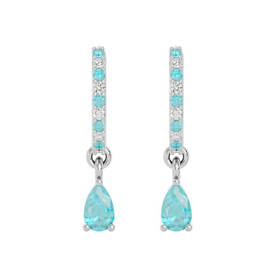 925 Silver Aquamarine & CZ Huggies