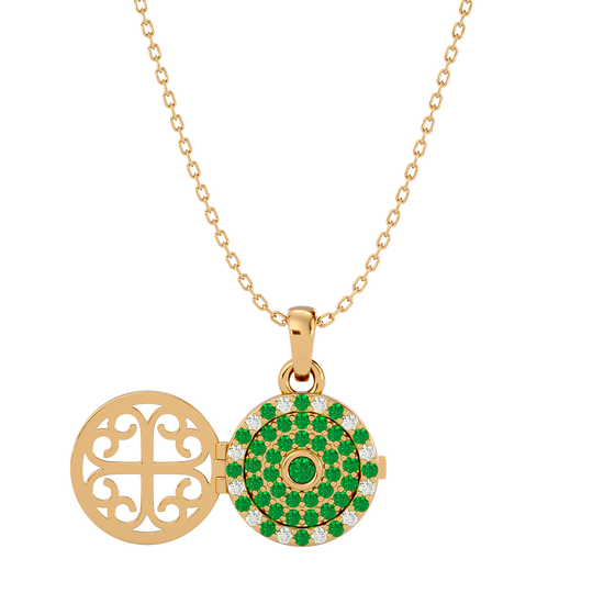 This captivating emerald locket is more than just a necklace — it’s a quiet celebration of growth, balance, and heartfelt connection. At its center lies a rich green emerald, treasured for its ties to renewal, love, and inner harmony. It’s gently framed by sparkling cubic zirconia, offering a graceful light that complements its deep, natural beauty.