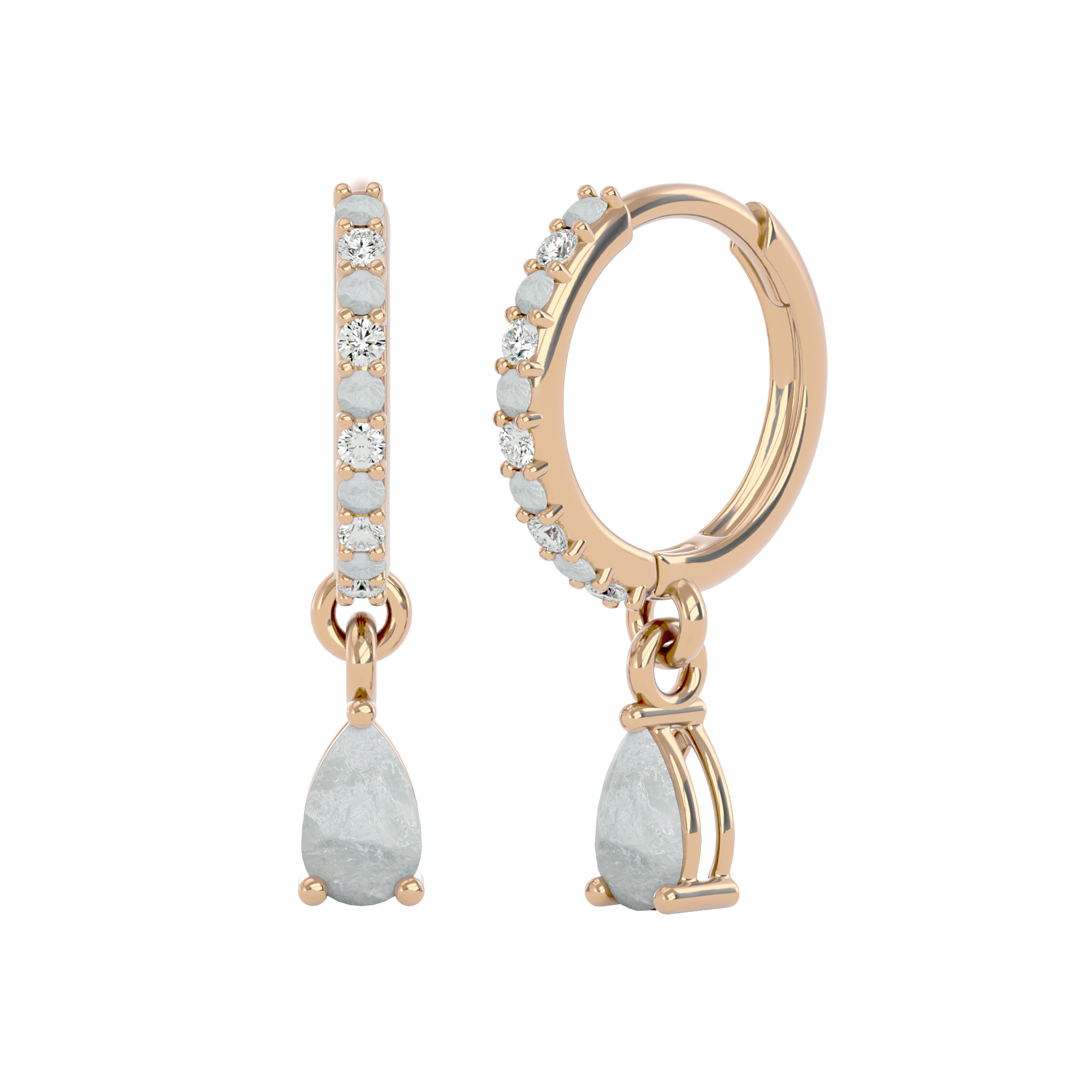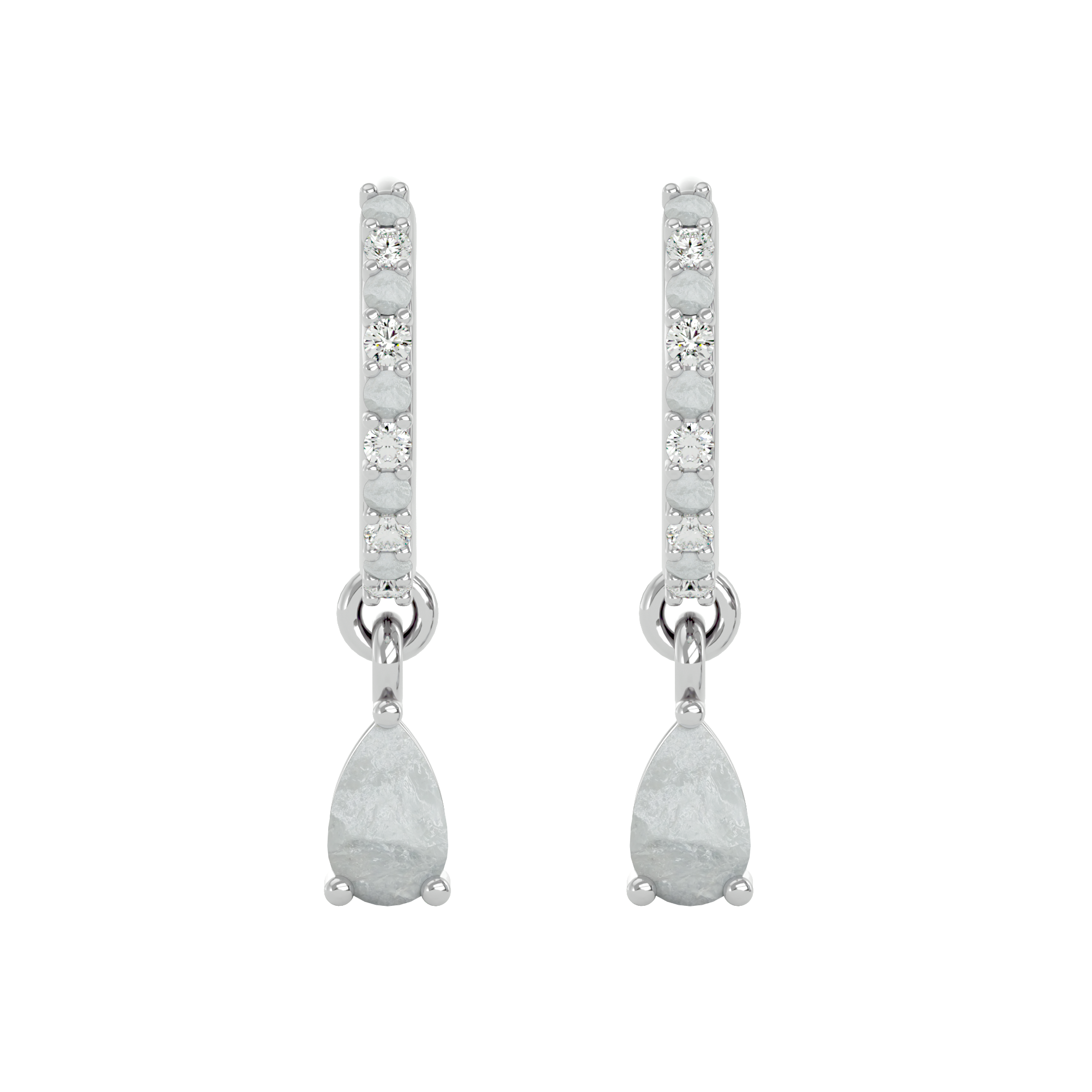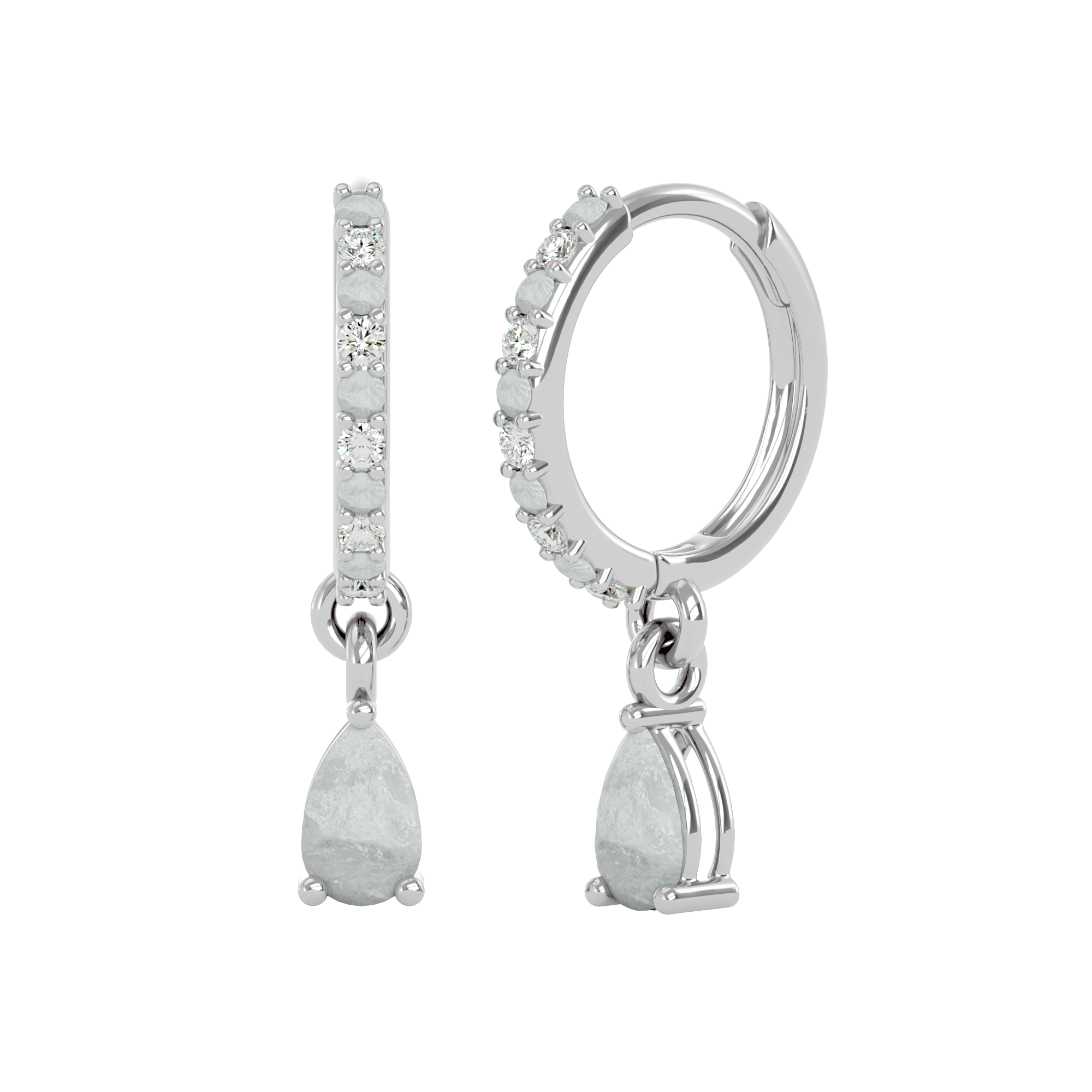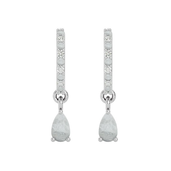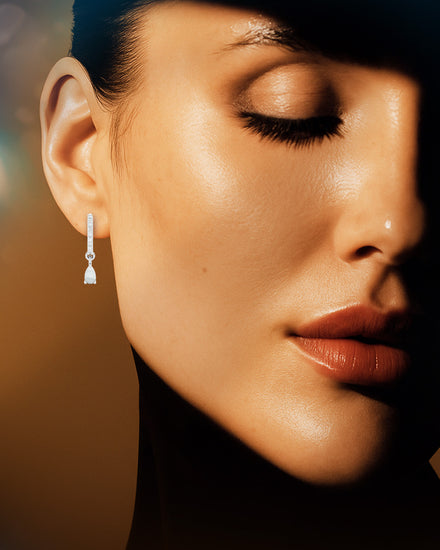 These sterling silver huggies are made to be noticed — but never loud. Featuring ethereal, pear-cut moonstones surrounded by a halo of cubic zirconia, they offer a soft, luminous glow with just the right hint of shimmer.