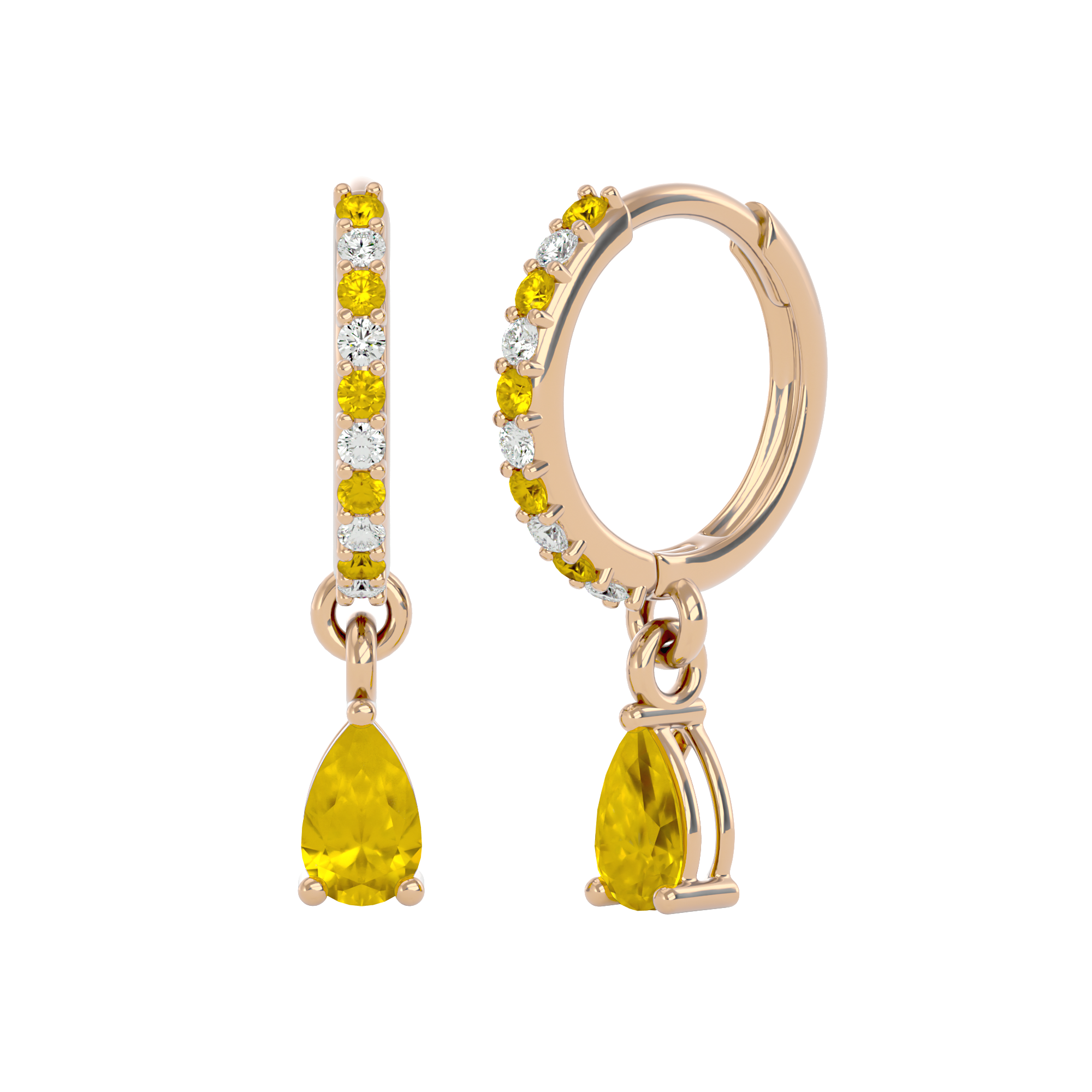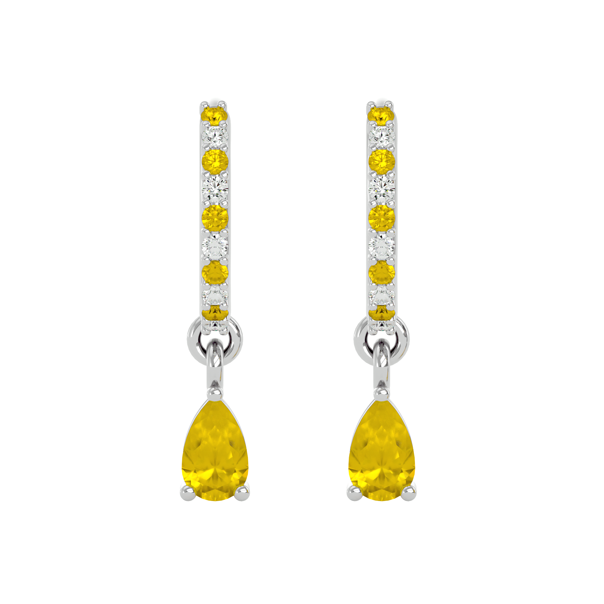 These sterling silver huggies are made to be noticed — but never loud. Featuring golden, pear-cut citrines surrounded by a halo of cubic zirconia, they offer a warm, sunlit glow with a touch of cheerful shimmer.