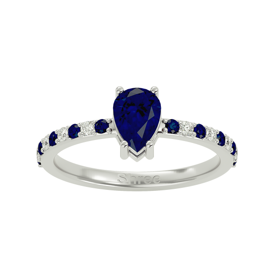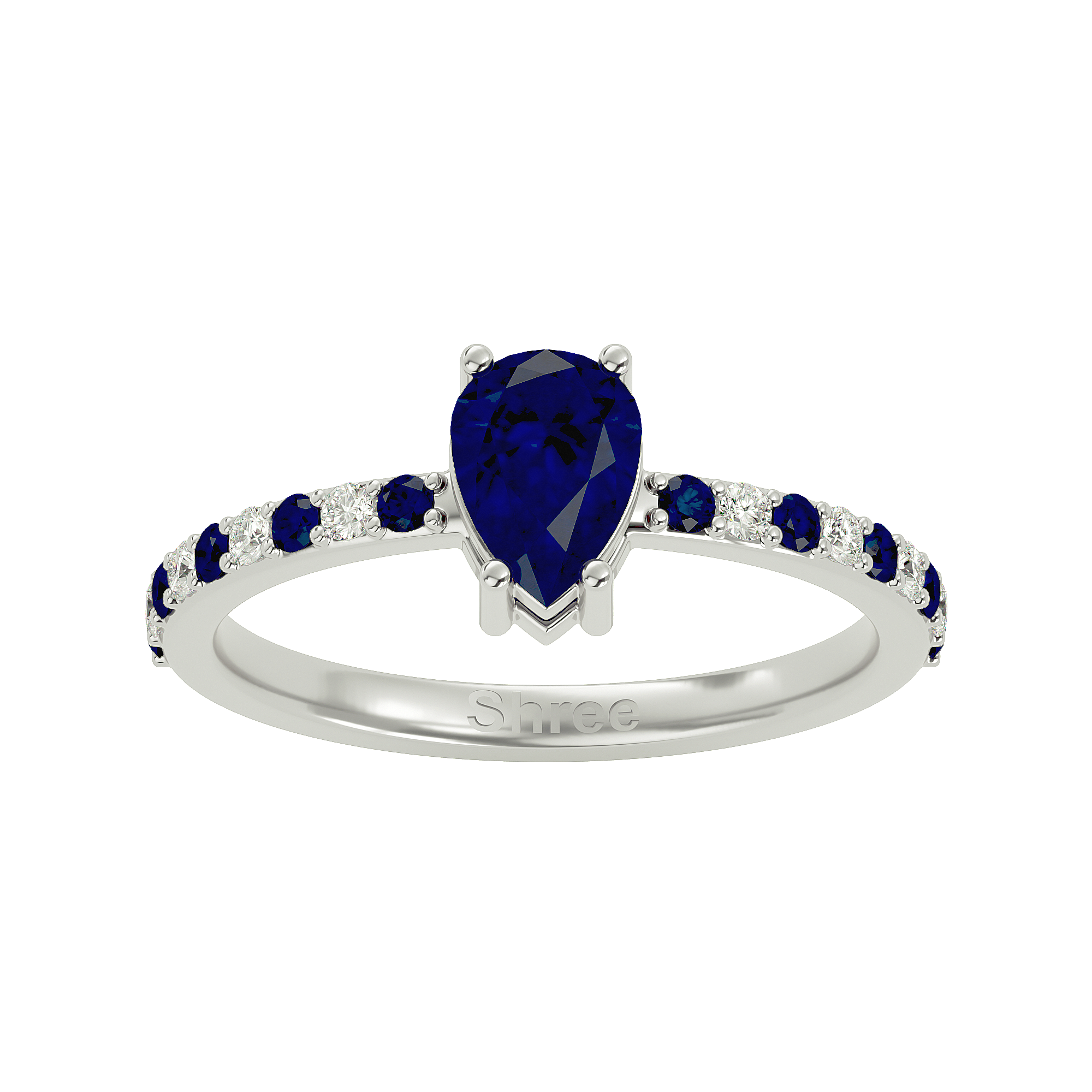 There’s something truly special about this piece. At its heart is a deep blue, pear-shaped sapphire — a stone long associated with wisdom, loyalty, and calm strength. It’s framed by sparkling cubic zirconia that catch the light beautifully, adding just the right amount of shimmer.