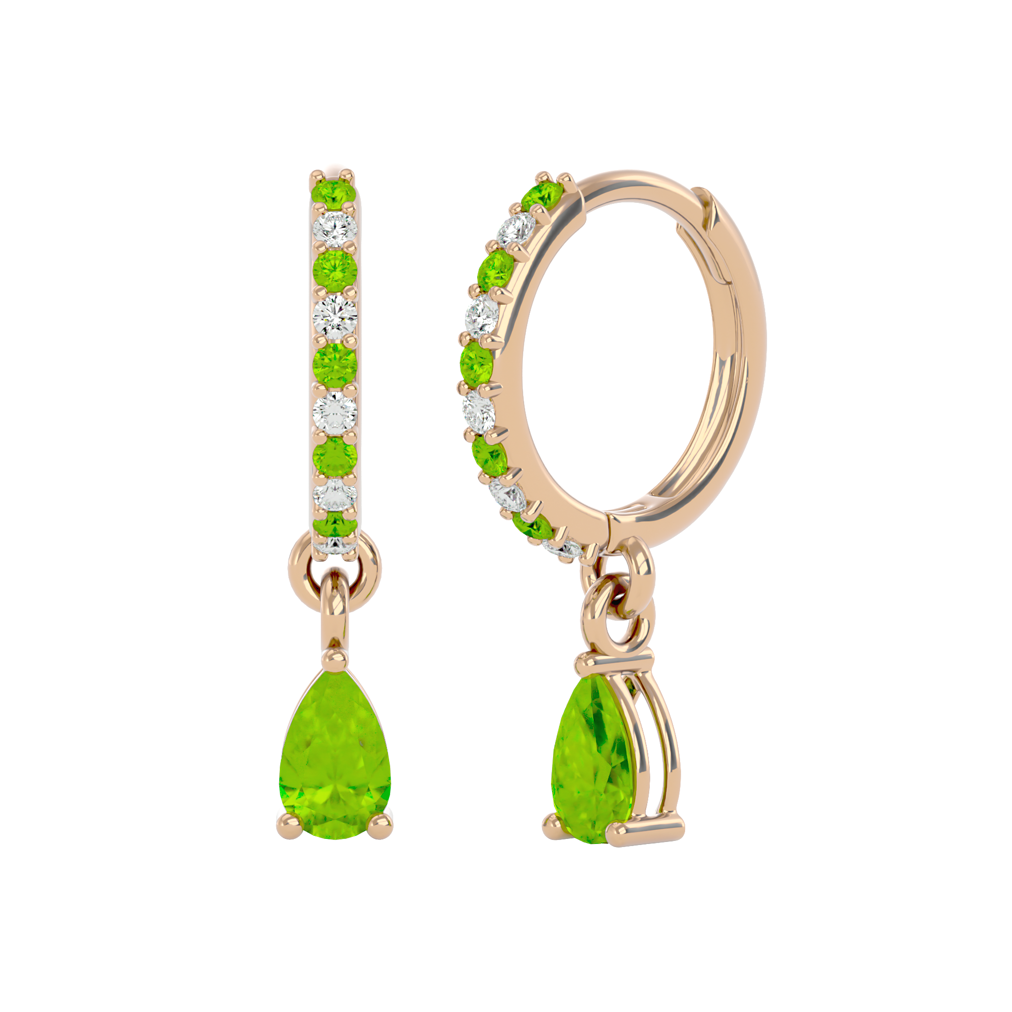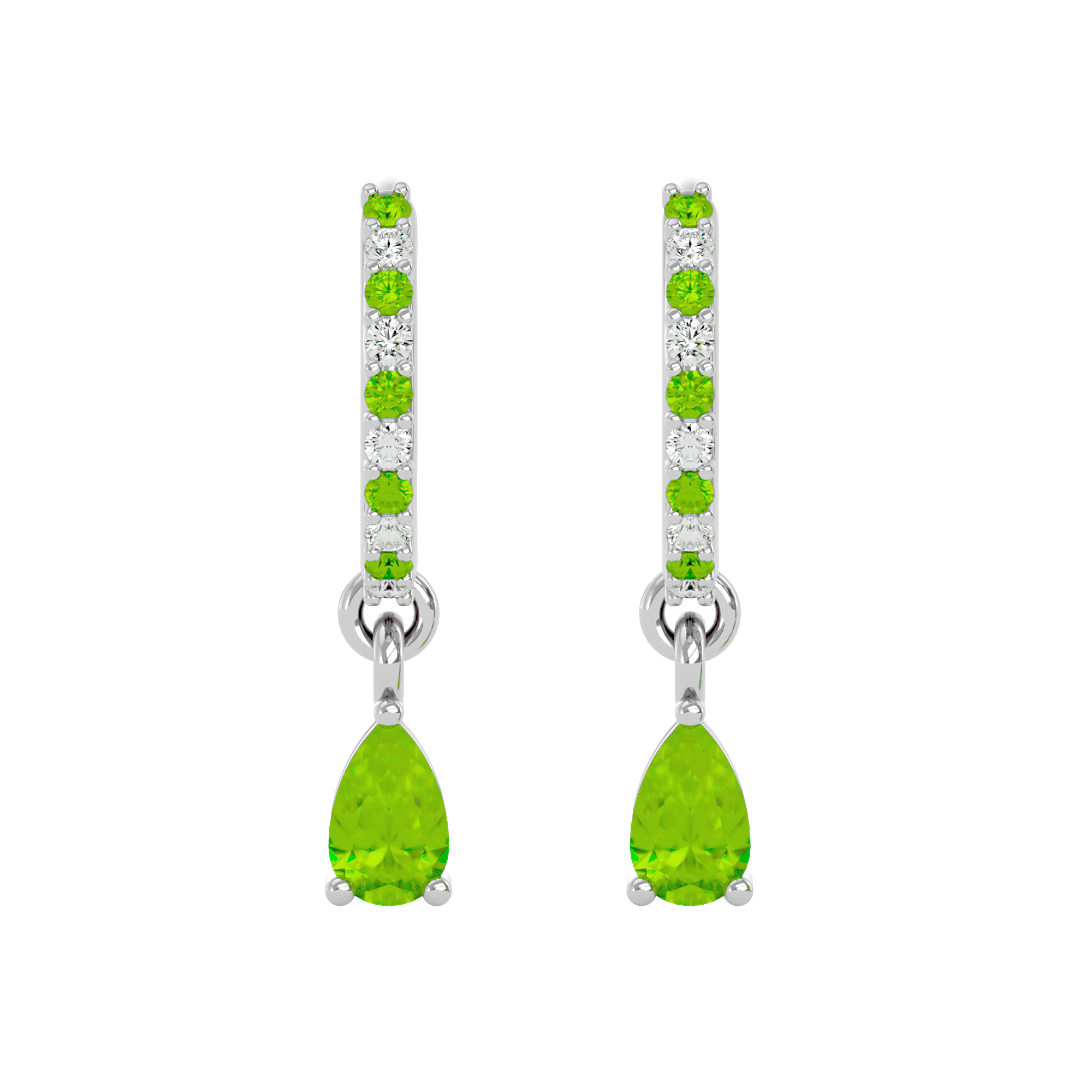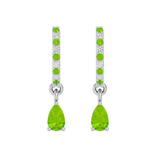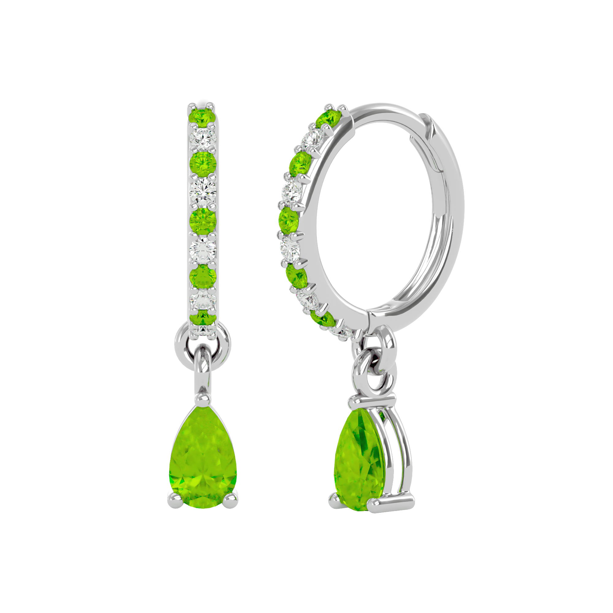These sterling silver huggies are made to be noticed — but never loud. Featuring fresh, pear-cut peridots surrounded by a halo of cubic zirconia, they offer a bright burst of green with a delicate, playful shimmer.