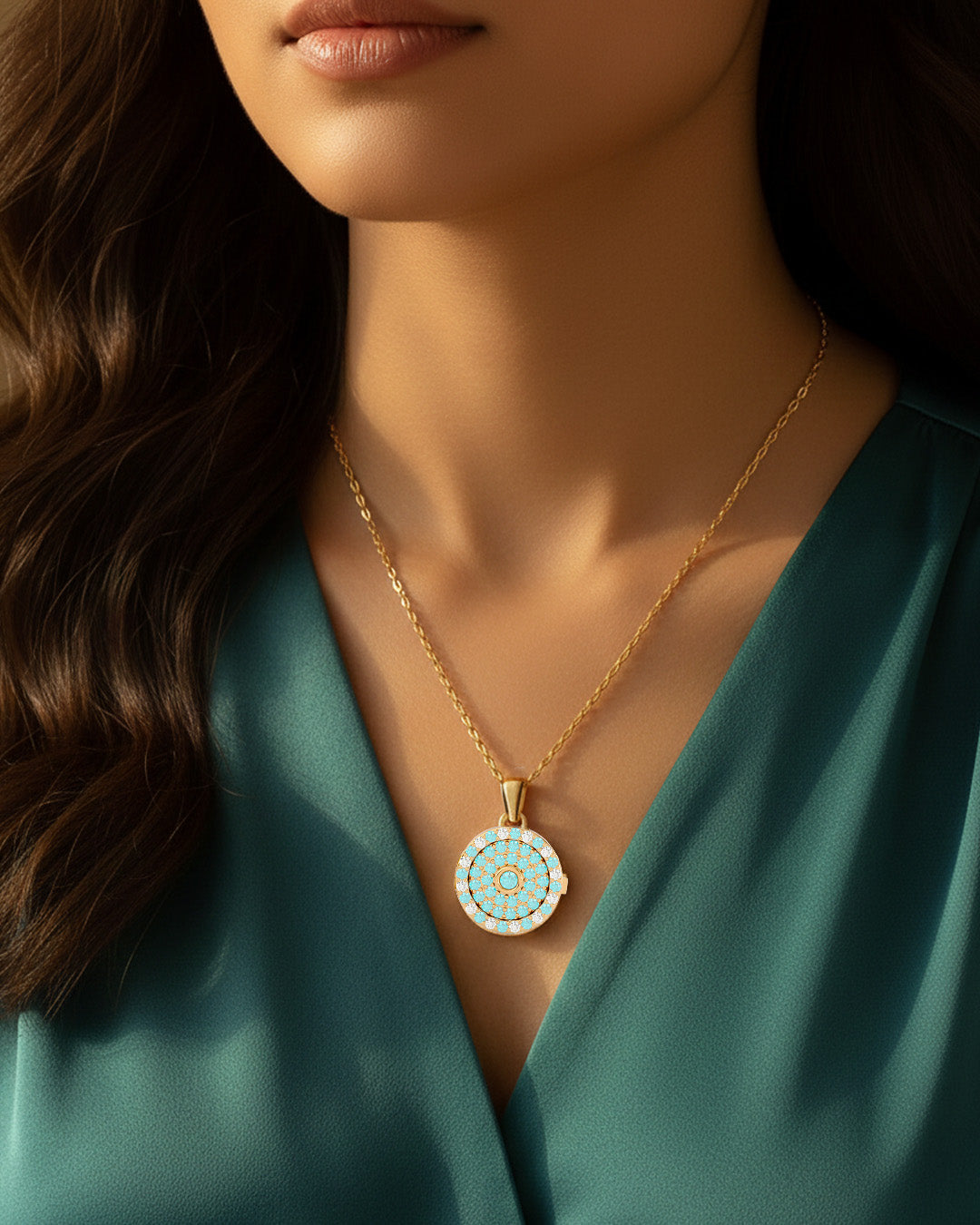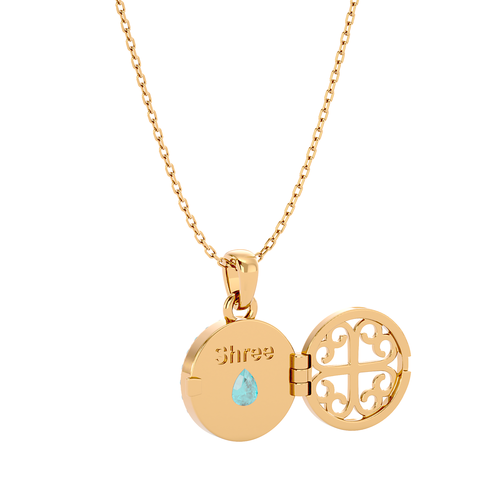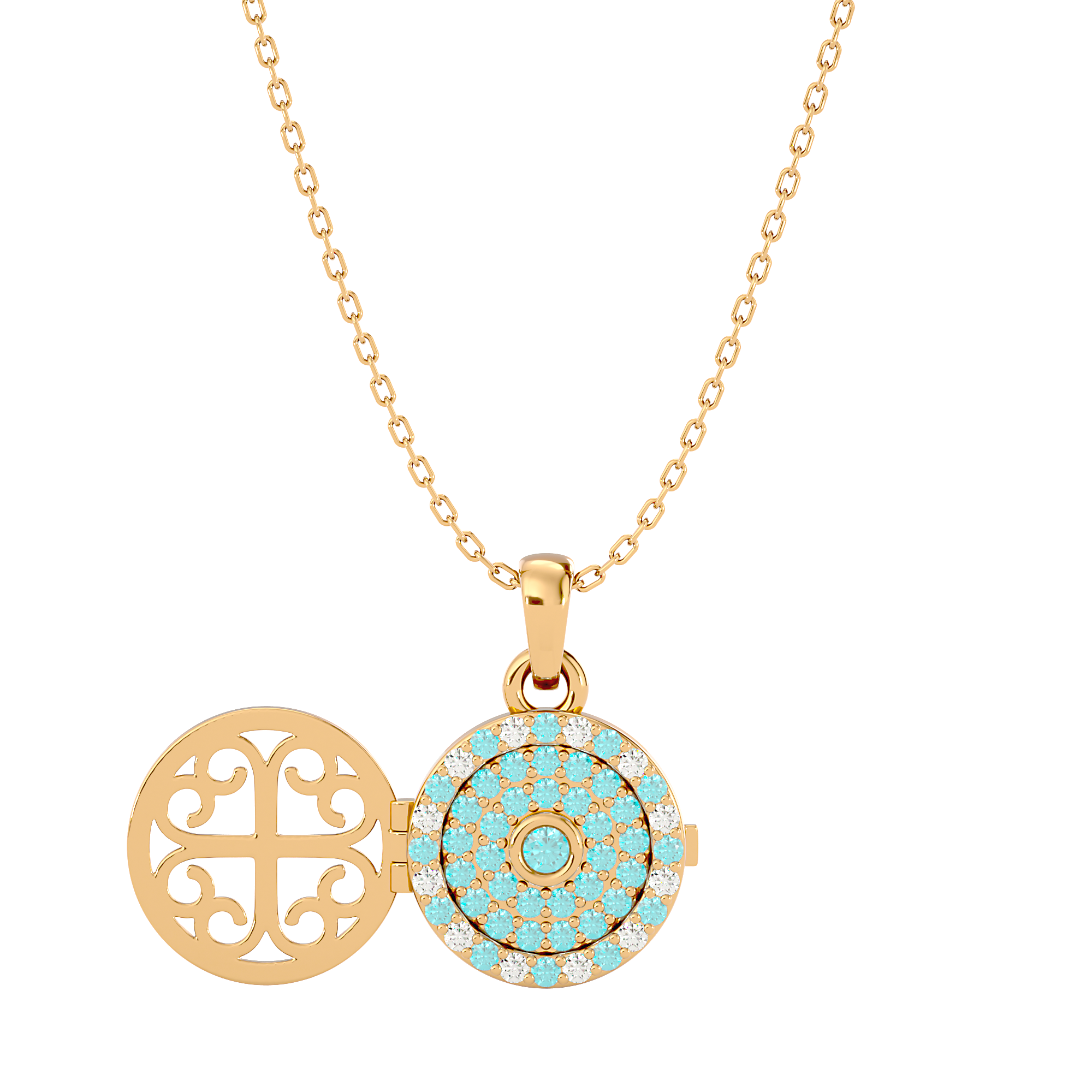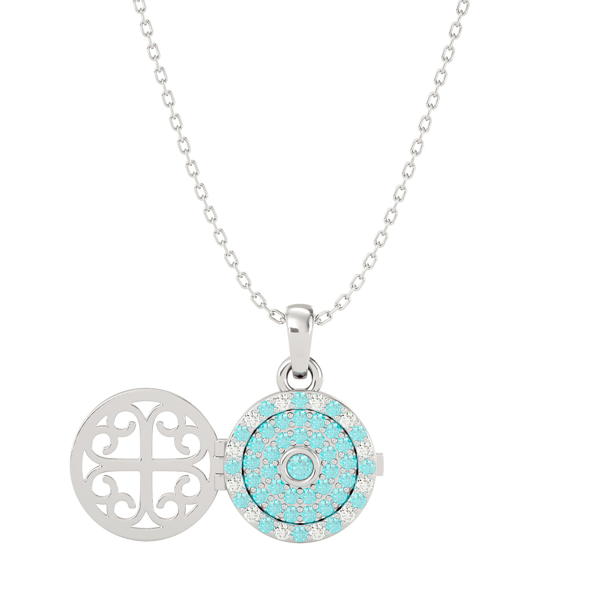 This serene aquamarine locket is more than just a necklace — it’s a gentle reminder of clarity, calm, and emotional flow. At its center lies a tranquil blue aquamarine, celebrated for its soothing energy and ties to courage, communication, and peace of mind. It’s gracefully encircled by shimmering cubic zirconia, adding a soft, watery sparkle.